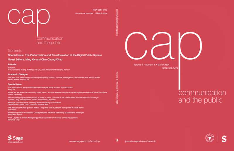 2025年1月,我院英文学术期刊《Communication and the Public》(传播与公众) 已由《中国科学院文献情报中心期刊分区表》(以下称中科院期刊分区表)以及《开放存取期刊指南》(DOAJ)正式收录,这标志着此刊在学术界的影响力和认可度进一步提升。回顾2024年,《Communication and the Public》持续巩固向好态势,共收到来自全球58个国家和地区的344篇投稿,综合接受率23.7%,在SCOPUS及Web of Science传播学类期刊中稳居2区。
