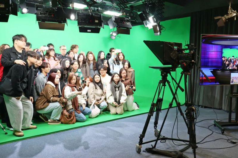 访问期间,代表团实地考察了传媒实验教学中心与融媒体演播中心,深入了解了浙江大学在传媒教育领域的前沿探索和创新实践。在浙江大学艺术与考古博物馆,我校留学生担任文化使者,以专业视角为来宾讲解了中国古代山水画的艺术特色与文化内涵。双方师生围绕传统艺术与现代传媒的融合发展展开了深入探讨,现场气氛热烈。