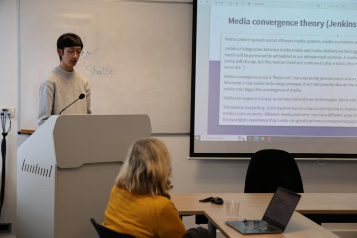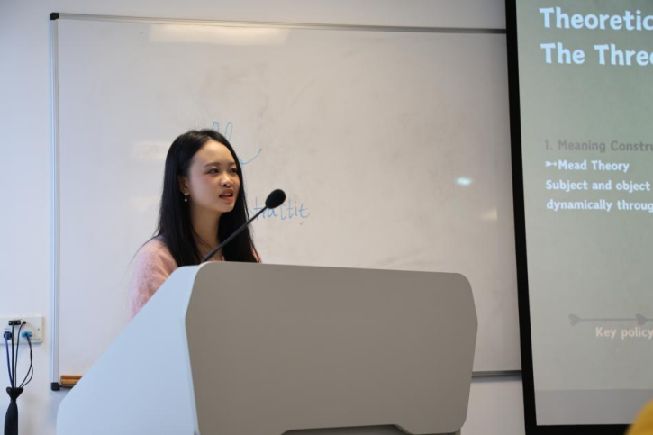 在访问期间,代表团的学生们在Roger Silverstone(LSE传播学创始人)会议室向LSE的教授和学者展示了多个研究课题,朱铭浩以“There's no Old Media”为题进行媒介融合的阐释,温文攀探讨了“饭圈”经济,汪熠阳结合改革开放政策和传播学理论探讨广告符号的演变。学生们的汇报内容深入、见解独到,展现了扎实的学术功底和创新的思维方式,赢得教授们的高度评价:“浙大学生展现出的学术潜力和研究热情令人印象深刻,期待未来有更多机会与浙江大学开展合作研究。”