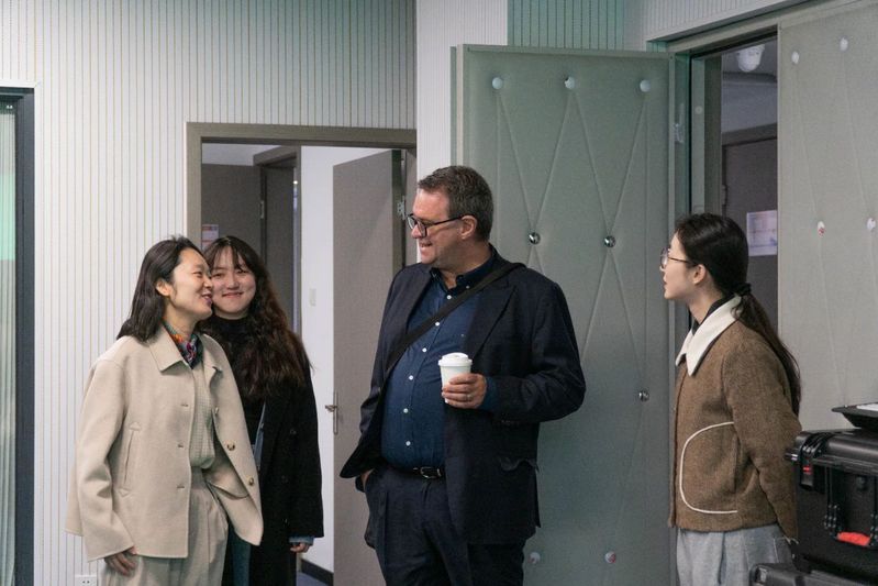 当天上午,Terry Flew参观了学院实验教学中心。该中心是国家级新闻传播学科虚拟仿真一流课程实验教学中心,深度融合了智能媒体制作的前沿技术。Terry Flew详细了解了实验中心在数字内容生产、智能传播技术等领域的教学,并对学院的实践理念表示高度赞赏。