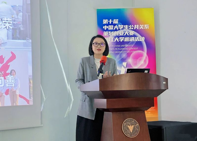 第十届大赛评委、华扬联众副总经理潘建新,学院策略传播学系主任章燕,拜耳(中国)有限公司雇主品牌经理王昳琼、高级招聘专家韩雪莹以及浙江大学的师生参加了巡讲。