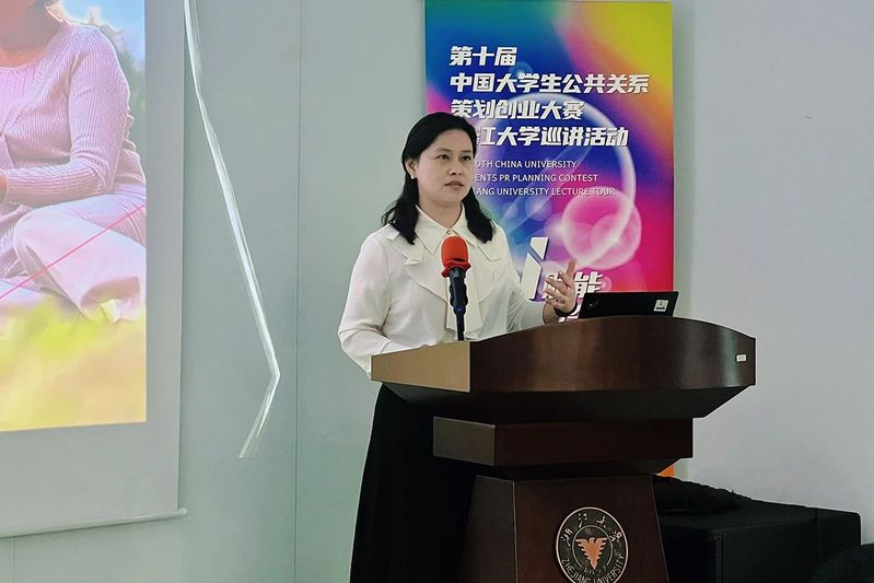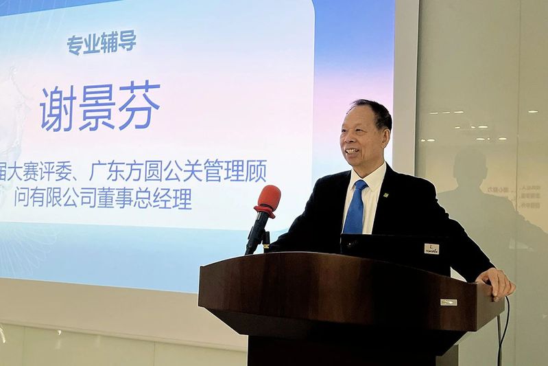 大赛评委、广东方圆公关管理顾问有限公司董事总经理谢景芬在专业辅导中以具体案例为例,对雇主品牌、公共关系与市场营销、整合营销传播等进行了专业解读,鼓励同学们在运用AI技术的基础上发挥创意、注重情感传播。