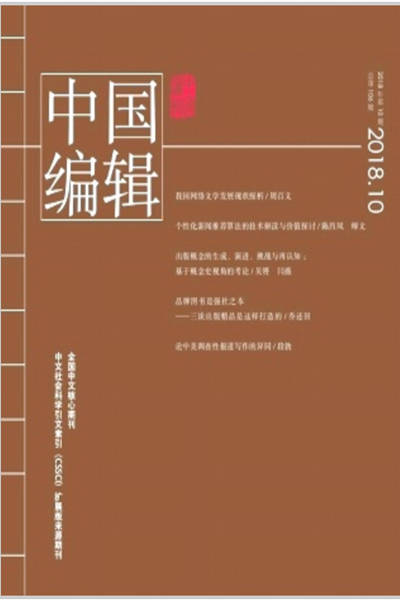 2018-10-10 《中国编辑》 吴赟; 闫薇出版概念在当下环境中面临适应性挑战,亟待重新认知。通过对出版概念史的梳理,发现出版概念是近代史语境下中国、西方国家、日本文化交流与知识互动的结晶;在实践中演进的出版概念是一个具有现代性的概念;在现代性视野下,出版和传播概念相互依存又各有侧重。基于上述发现并结合当下环境,本文提出了出版概念再认知的新路径,并将出版概念界定为:一种将不同主体创造的知识加以组织、加工、建构,并发布在公共载体上的社会互动行为。 更多 -