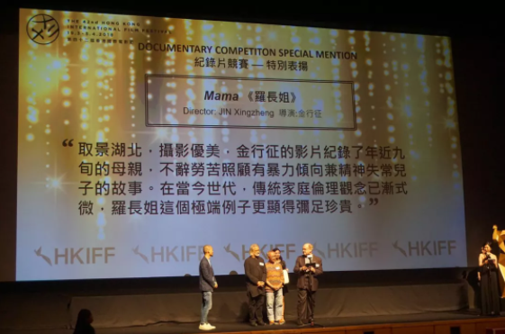 The film was awarded a special mention at the 42nd Hong Kong International Film Festival for “Luo, the protagonist of Mama, is all the more valuable in contemporary society where traditional family ethics are torn apart by the times.”