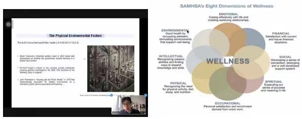 In the second session, Dr. Nie Xuanyi shared his thoughts on urban space with adaptivity and health. Dr. Nie proposed a blueprint of a highly livable environment from eight dimensions. He also discussed with students the determinants of a healthy society and the relationship between social capital and mental health.