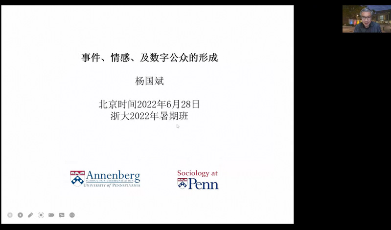 On the morning of June 28, Professor Yang Guobin of the University of Pennsylvania gave a lecture on the topic of The Formation of Events, Emotions and Digital Public. Beginning with the introduction over the development of online public opinion since 2022, he discussed public participation, Internet culture and politics in the age of social media.