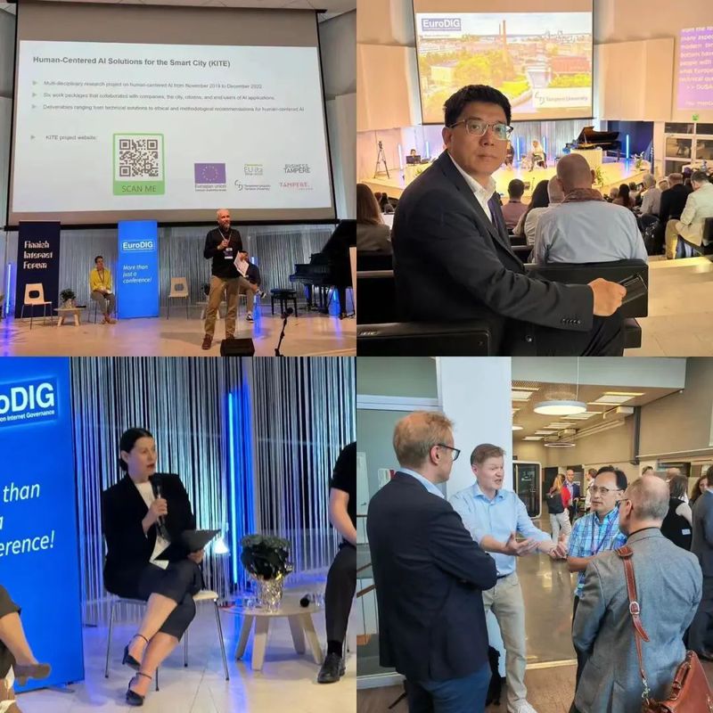 From June 19 to June 21, more than 400 heads of international organizations, experts, and scholars from IGF, ICANN, Microsoft, Internal Affairs and Communications, ISOC Foundation, Scientific Cyber Security participated in the European Dialogue on Internet Governance (Euro DIG) held at the University of Tampere in Finland. Distinguished Professors Wu Fei and Fang Xingdong and Prof. Zhong Bu of Hong Kong Baptist University were invited to attend the meeting.