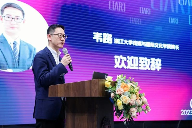 The meeting was presided over by Wang Qingwen, Secretary of the Party Committee of the School of Media and International Culture, Zhejiang University, and Wei Lu, Dean of the School of Media and International Culture, Zhejiang University, delivered an opening speech.