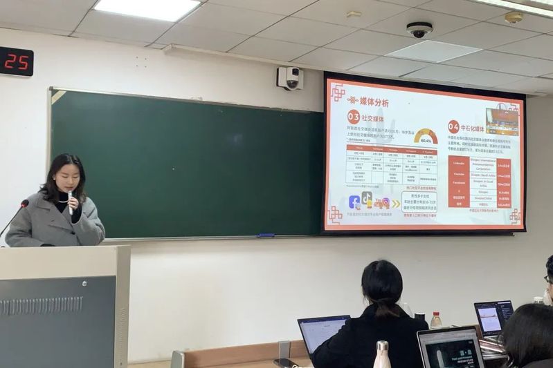 This semester, the course design continued its tradition of industry-academia collaboration, adopting a project-based teaching method. Focusing on the international communication needs of central state-owned enterprises (SOEs), the course used Sinopec Middle East's annual communication proposal as its topic. It aimed to cultivate students' theoretical application abilities, cross-cultural thinking, and international communication practices, while also inspiring their interest in pursuing careers in international communication.