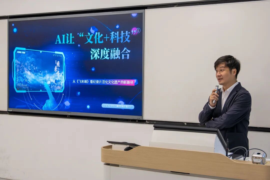 On 5 November, the 81st session of the Excellence Media Lecture Series was held in Room 1-121, North Teaching Building. Titled ‘AIGC Empowering the Poetic Authenticity and Aesthetic Excellence of the Documentary Flying Peak’, the lecture featured Jiao Zhengyuan, Director of the Party Building Programme Department at Zhejiang Broadcasting Group's Zhijiang Documentary Channel and director of the documentary Flying Peak, as the keynote speaker. The event was chaired by Lu Xiaoxiao, a faculty member specialising in film and television studies.