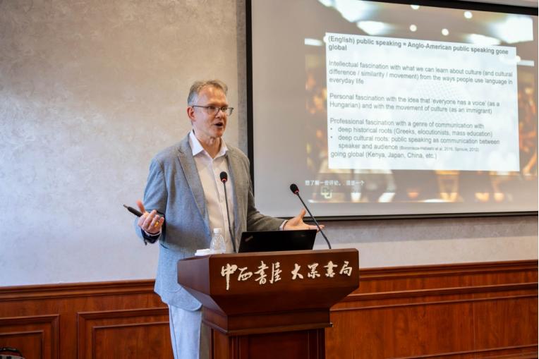 On the afternoon of 10 October, the 19th instalment of the ‘Seeking Truth in Media’ lecture series, supported by the Zhejiang Mobile Humanities and Social Sciences Fund and hosted by Zhejiang University's Digital Communication Research Centre, School of Communication and International Culture, and Digital Social Sciences Convergence Research Programme, took place at the Zhongxi Bookstore · Dazhong Bookstore on the Zhejiang University campus. The lecture featured Associate Professor David Boromisza-Habashi from the Department of Communication at the University of Colorado Boulder. Moderated by Professor Huang Guangsheng, a researcher under our School's ‘Hundred Talents Programme’, the event drew participation from dozens of faculty members and students, who engaged in a lively discussion.